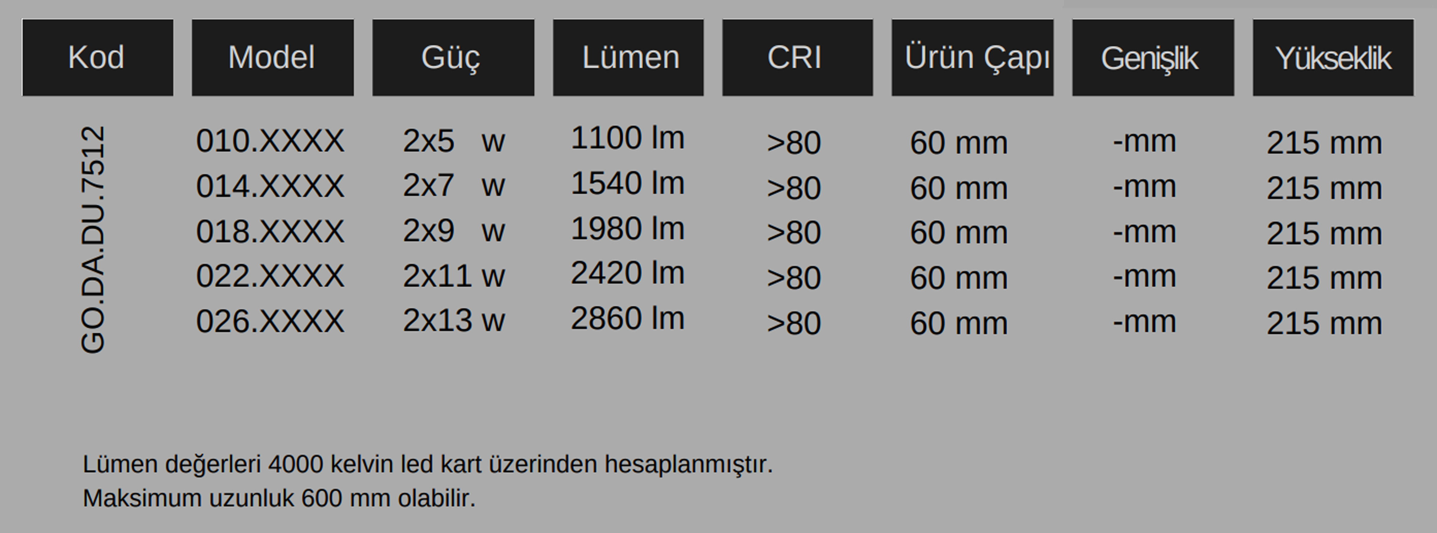 Gövde Rengi: RAL XXXX